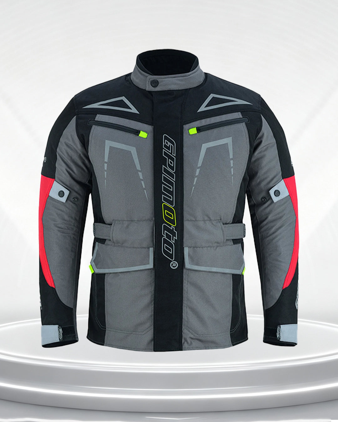 Men's All Season 4 Pockets Water Proof Motorcycle Black/Grey/Red Jacket-