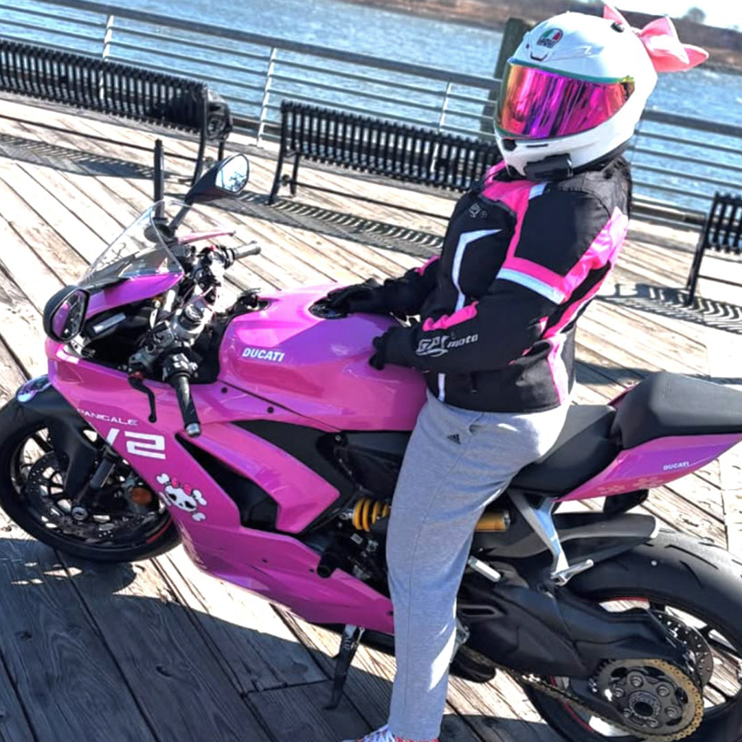 Discover GPI Moto women’s motorcycle jackets made with durable 600D A+ Cordura...