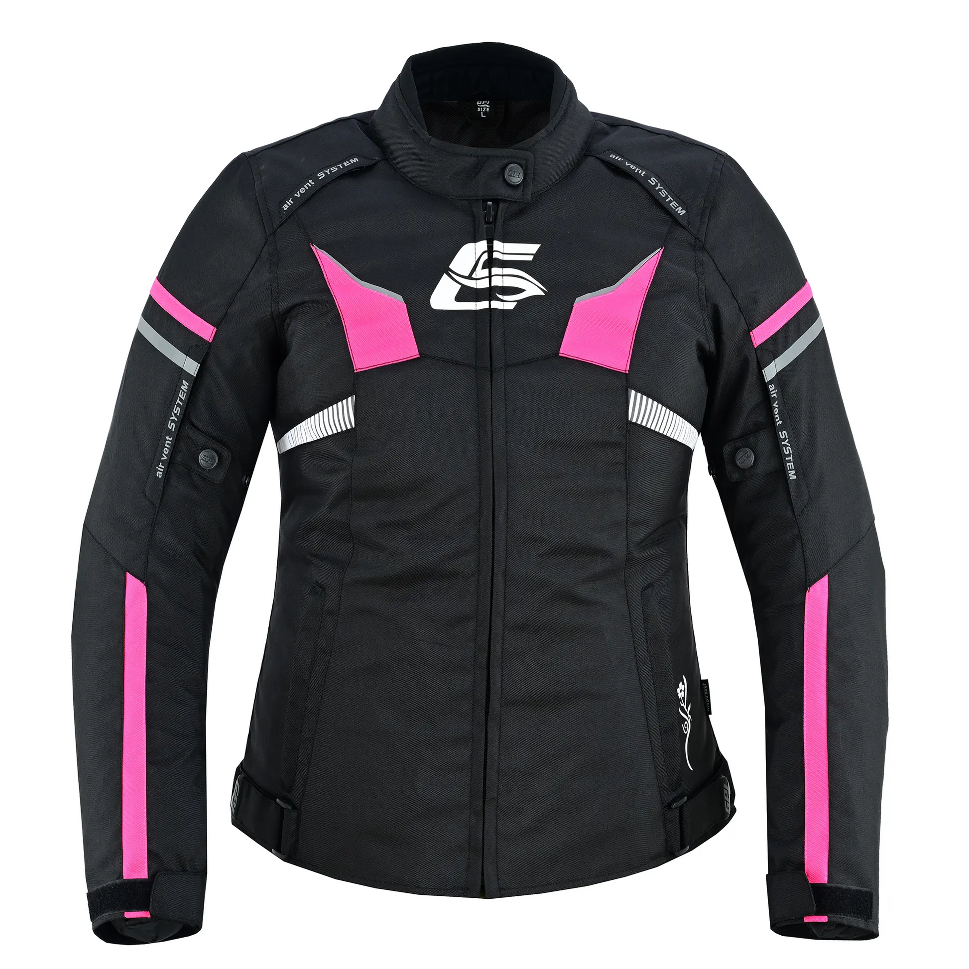 La chaqueta de moto rosa/negra de GPI Moto es impermeable, duradera y de alta calidad. Perfecta para todo tipo de clima, su capa exterior de Cordura es 100 % impermeable y cortavientos. Ofrece excelente movilidad y un excelente rendimiento en cualquier condición climática.