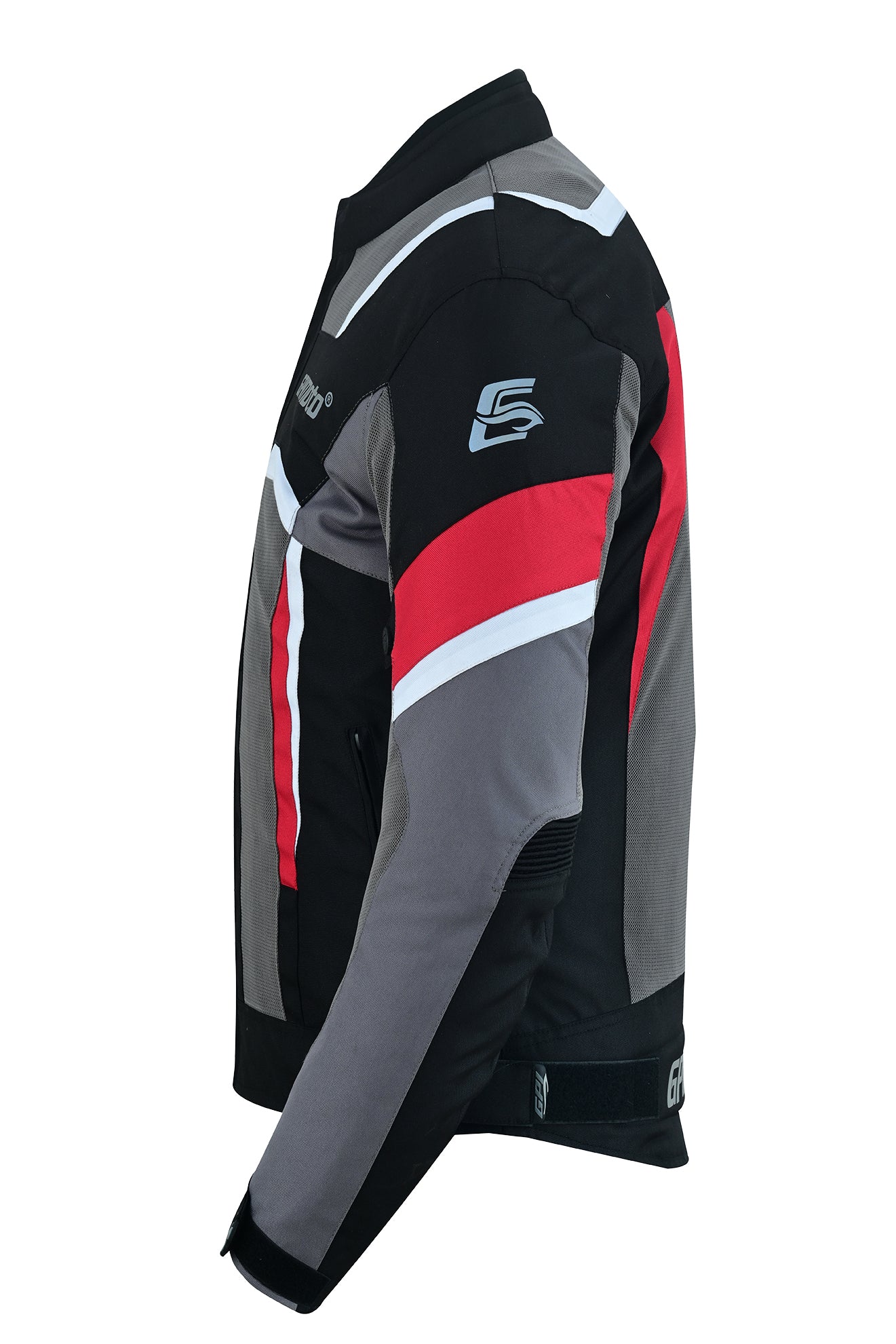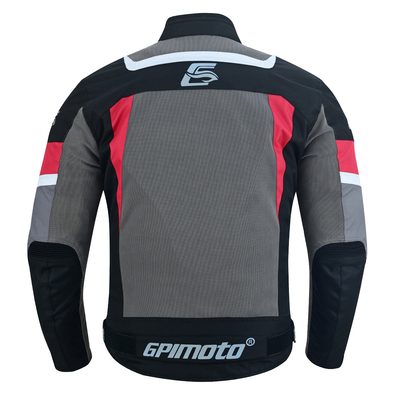 The Black/Red/Grey Motorcycle Jacket by GPI Moto is a waterproof, high-quality, durable jacket. Perfect for summer weather, the Cordura outer shell is 100% waterproof and windproof. This jacket offers excellent mobility and performs well in any weather conditions!