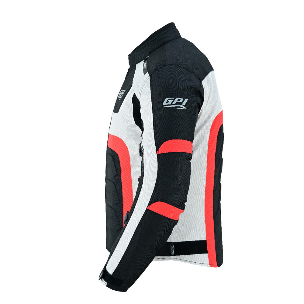 The Black/Beach/Red Motorcycle Jacket by GPI Moto is a waterproof, high-quality, durable jacket. Perfect for all types of weather, the Cordura outer shell is 100% waterproof and windproof. This jacket offers excellent mobility and performs well in any weather conditions!