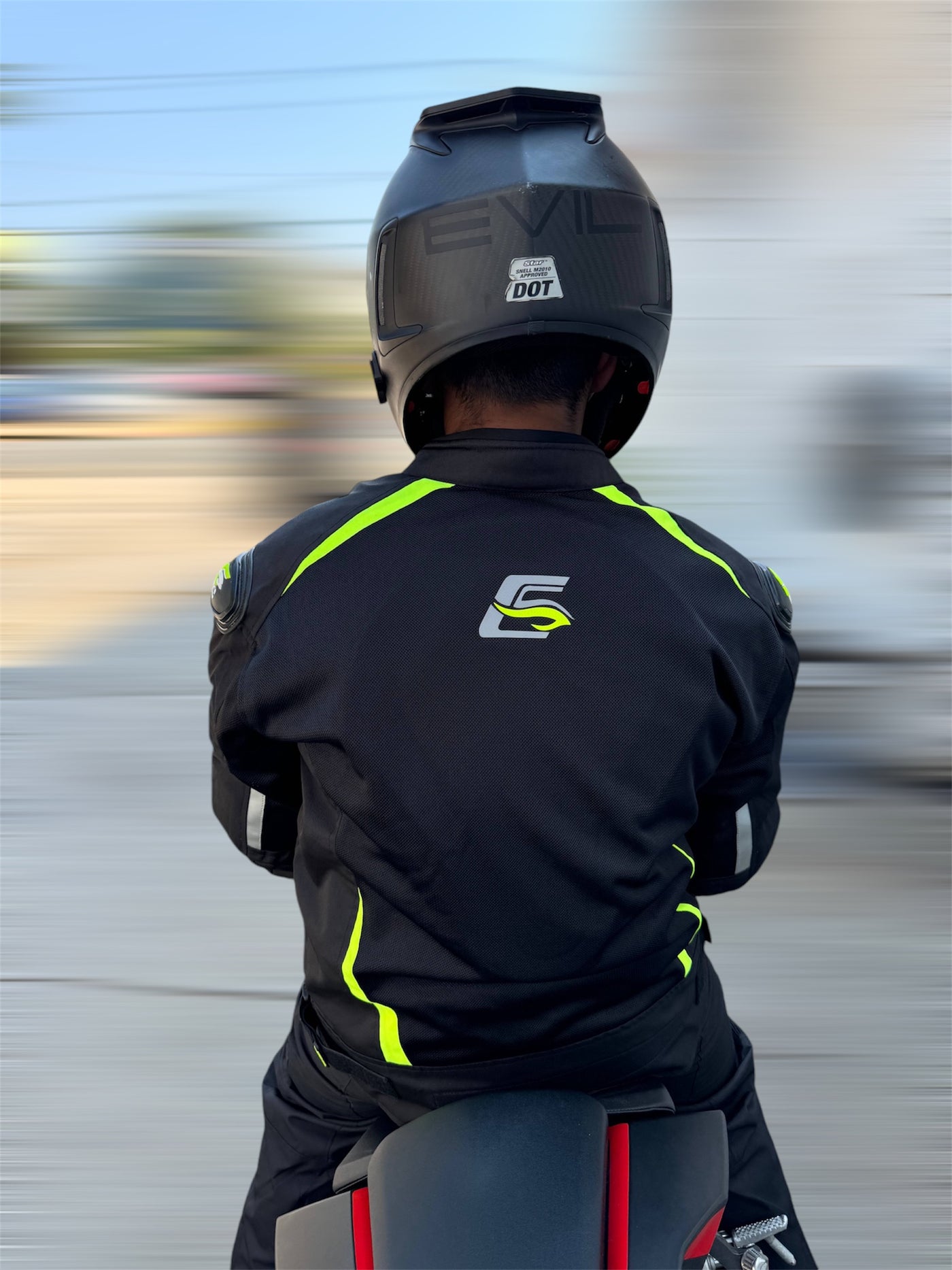 Men’s High Premium Quality Summer 4 Pockets Waterproof Motorcycle Black/Fluorescent Jacket-