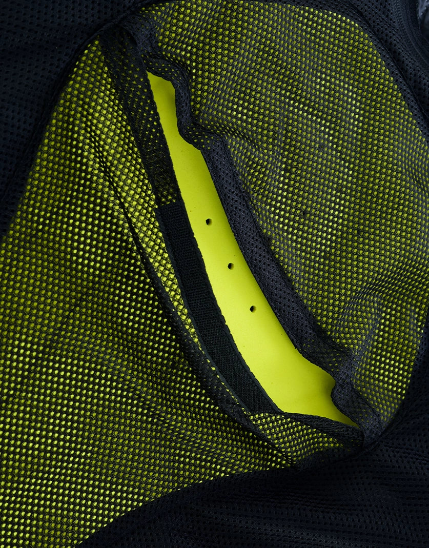 - Neoprene-Lined Collar: Soft neoprene inner collar with a branded snap closure prevents neck irritation and enhances long-ride comfort.